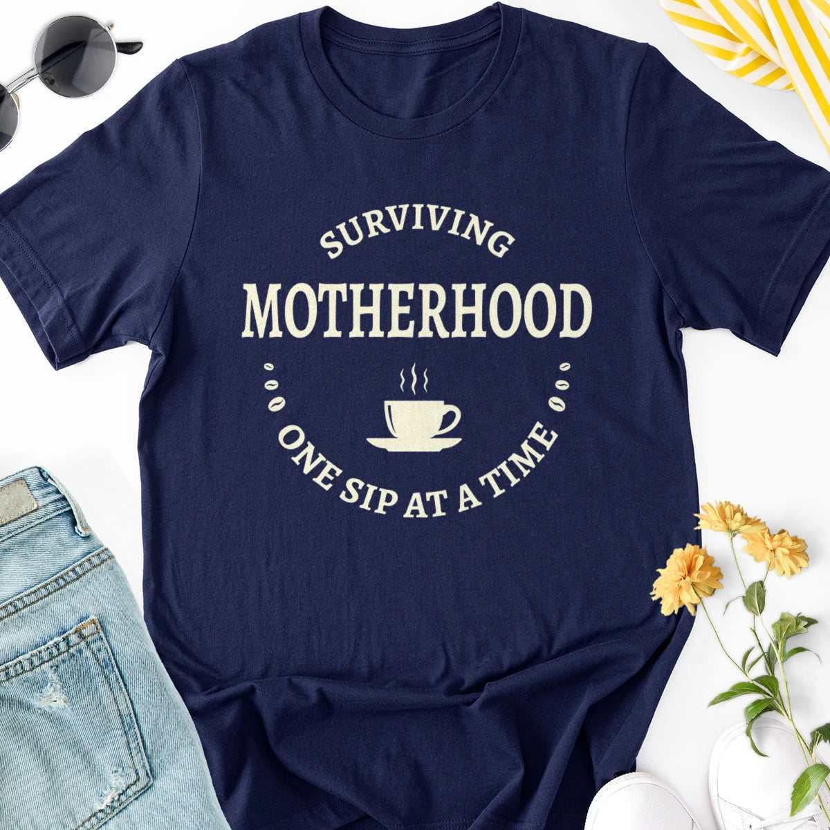 Surviving Motherhood One Sip at a Time Adult Tee